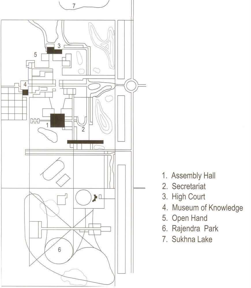 Le Corbusier’s master plan for Chandigarh, India, is a renowned example of modernist urban design and architecture. The city reflects his vision of a functional, efficient, and human-centered city. Commissioned by the Punjabi government in the early 1950s to be a new capital post-Indian independence, the layout for Chandigarh employed a grid-based organization divided into self-contained sectors containing essential amenities such as markets, schools, and recreational spaces. The initial plan, designed by American architect Albert Mayer and his collaborator Matthew Nowicki, was inspired by the European Garden City model. Le Corbusier was later brought in to further develop this plan according to his own design philosophy. Central to Corbusier’s design was the Capitol Complex, which represented the "head" of the city, symbolizing its governing and administrative power. The government buildings in this complex, such as the High Court, Secretariat, and Legislative Assembly, exemplify Le Corbusier's "Five Points of Architecture." Architecturally, they featured pilotis (supporting columns), open floor plans, horizontal windows, free façades, and rooftop gardens.The city’s center acts as the "heart," and a hub for gathering. The city’s commercial center acts as the "stomach," driving its economic and social activity. The industrial area serves as the "limbs," representing the city's working and productive force. The city's green spaces act as the "lungs," providing open areas for fresh air, recreation, and environmental balance. The road network functions as the "circulatory system," ensuring smooth transportation and connectivity across the city. Le Corbusier also emphasized the integration of nature, incorporating green belts and open spaces to enhance livability. His approach to Chandigarh combined aesthetic innovation with practical urban planning, creating a city that remains a benchmark for modernist architecture and planning.