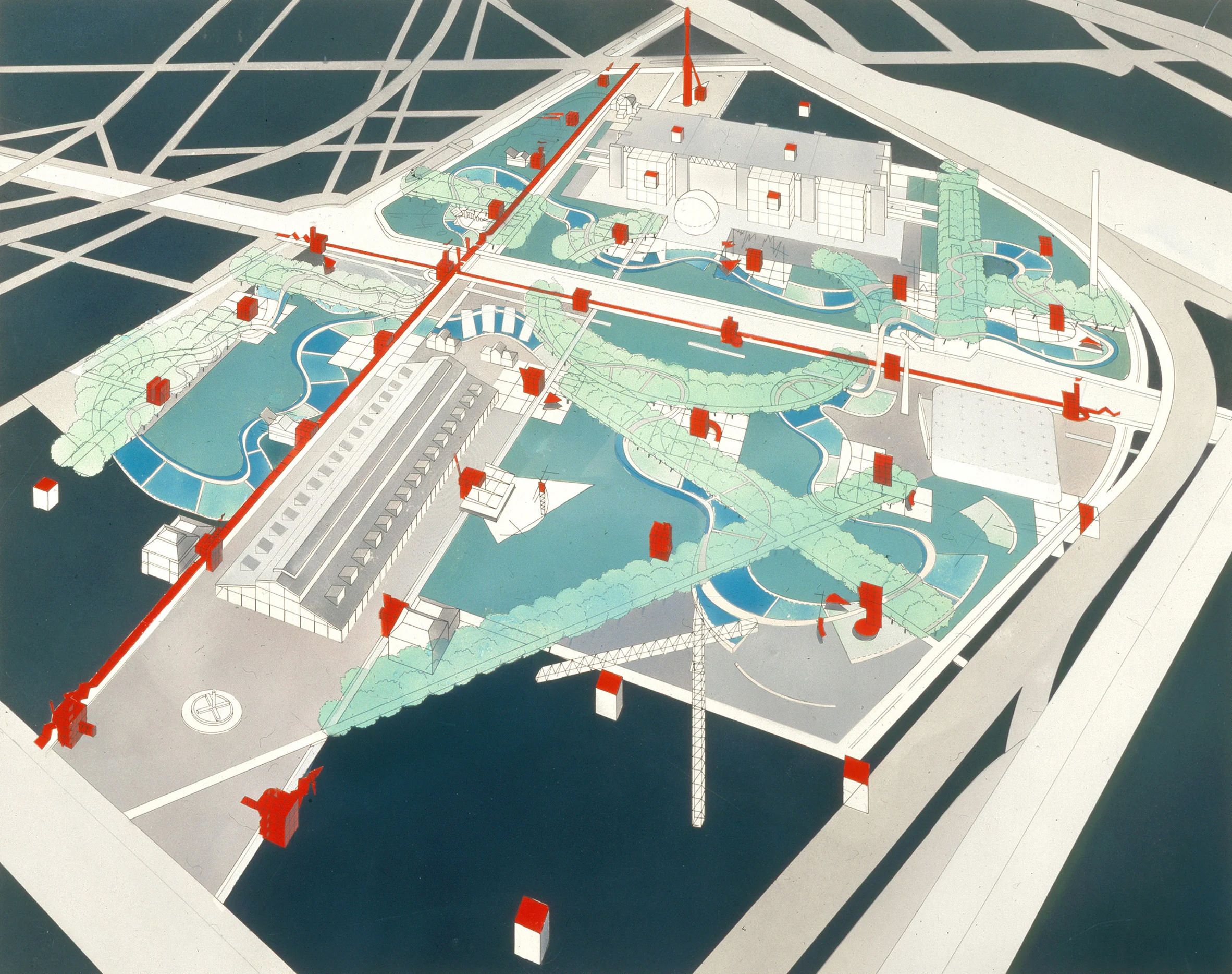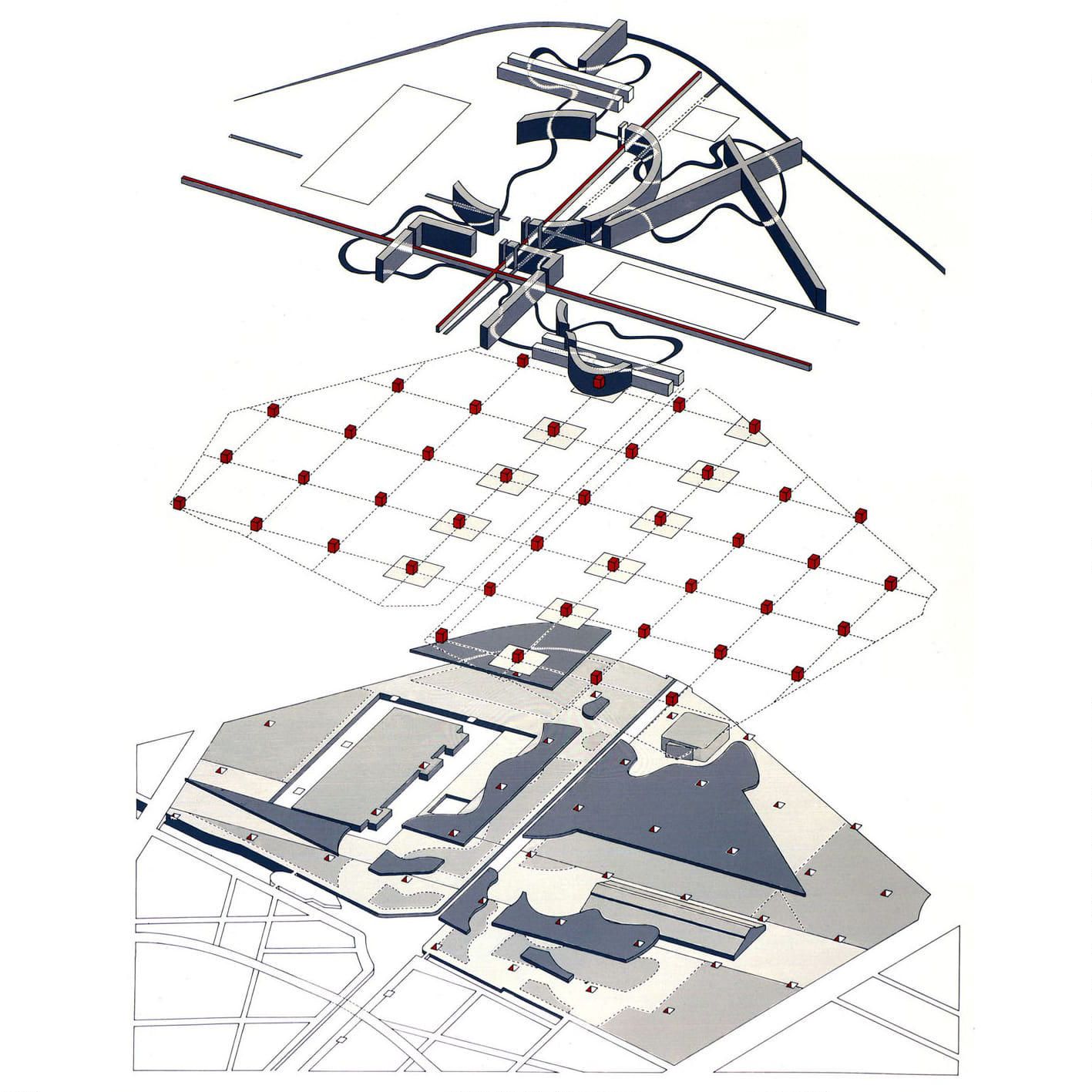 La Cité du Sang, or The City of Blood, was the 19th-century colloquial name given to the area now known as Parc de la Villette due to its history as the site of the largest complex of slaughterhouses in Paris - Les Abattoirs de la Villette. This massive industrial complex became the central hub for meat processing, symbolizing the gritty industrial side of Paris. By the mid-20th century, the widespread adoption of refrigerant cooling allowed livestock to be processed where they were reared and shipped directly to retailers. This development rendered the abattoirs obsolete, leading to their closure in 1974. This set the stage for a significant transformation of the area, spearheaded by President François Mitterrand’s Grands Projets—a series of urban development initiatives reminiscent of Haussmann's major reorganization of Paris. The renewal began with the announcement of buildings such as the Cité des Sciences et de l’Industrie, Europe’s largest science museum at the time, and performing arts facilities like the Cité de la Musique. Plans for an interstitial park progressed slowly until Mitterrand's election in 1981, after which the scope of the buildings expanded, and an international competition was launched to design a 21st-century urban park. Bernard Tschumi was selected from over 400 entries, including those from renowned architects like Rem Koolhaas, Zaha Hadid, and Jean Nouvel. Tschumi’s design was inspired by the orthogonality of the abattoir complex and the canals, expressed through three superimposed systems: points, lines, and surfaces. The points, represented by the red follies, signify disjunction, while the lines, which parallel the perpendicular canals, facilitate pedestrian movement through galleries stretching across the site and providing sequential views of themed gardens. Lastly, The surfaces are represented by expansive grassy flats. Despite its success, the project is not without criticism. Critics argue that while the design may expand architectural boundaries, it fails to innovate in landscape design, often prioritizing theoretical concepts over practical, experiential elements. Key figures in landscape architecture, such as Elizabeth Meyer and Peter Latz, criticized Tschumi's simplistic view of nature and dismissal of traditional landscape elements. The park's distinctive red follies have aged poorly, and the design's reliance on abstract architectural theories has led to a space that some find spatially uninteresting and detached from its urban and natural context. Nonetheless, Parc de la Villette remains a notable and debated example in urban park design.